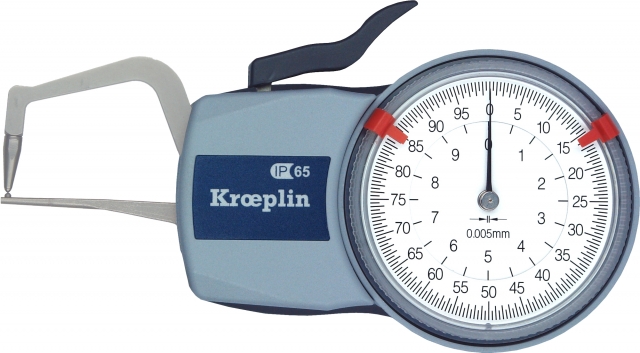Les contrôleurs d’épaisseur extérieur ergonomiques KROEPLIN sont des pinces de mesure d'épaisseur, qui permettent la mesure de différentes plages d'épaisseur avec des possibilités de grandes profondeurs de bras. Ces palpeurs rapides extérieur à affichage analogique ou électronique existent en version dédiée pour parois de tubes ou de tuyaux, avec des touches fixes ou mobiles, et une plage de mesure allant de 0 à 100 mm s’adaptant à diverses étendues avec des possibilités de grandes profondeurs de bras.